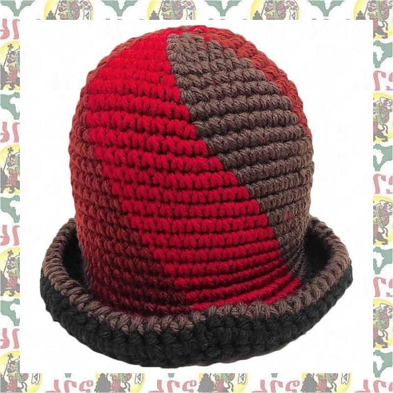 スパイラル模様が魅力の、完全ハンドメイドのニットハット。