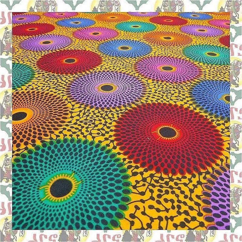 主にアフリカなどで使用される通称アフリカンプリント布です。