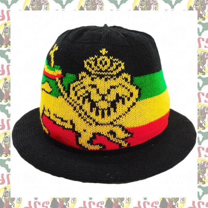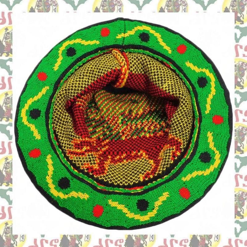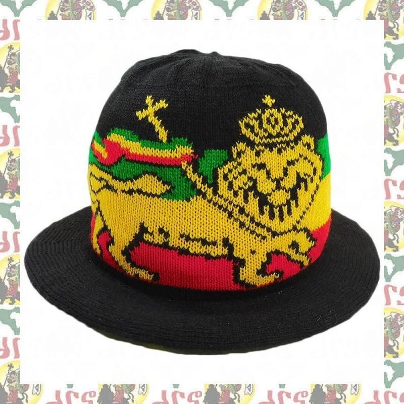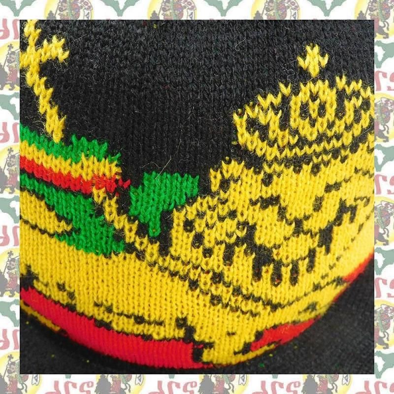 このニットハットは、**エチオピアの象徴「ライオン・オブ・ジュダ」**をモチーフに、