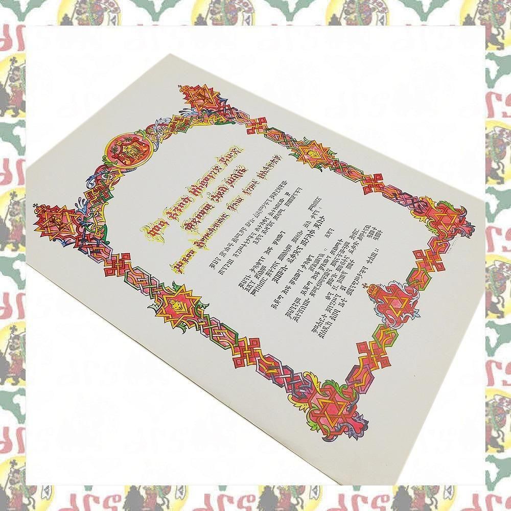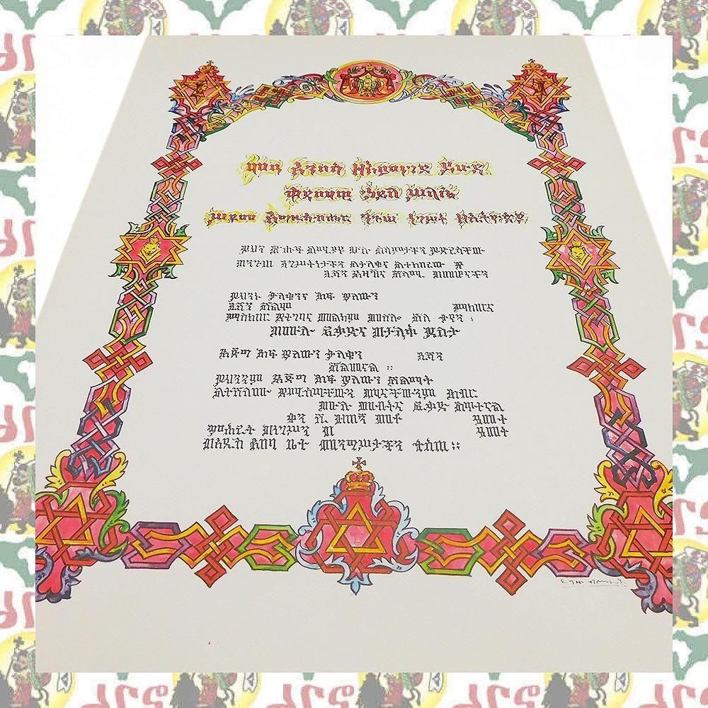 多色の装飾枠や王室モチーフが描かれており、ハイレ・セラシエ1世時代の典型的なデザインが残る歴史的価値の高い一枚です。