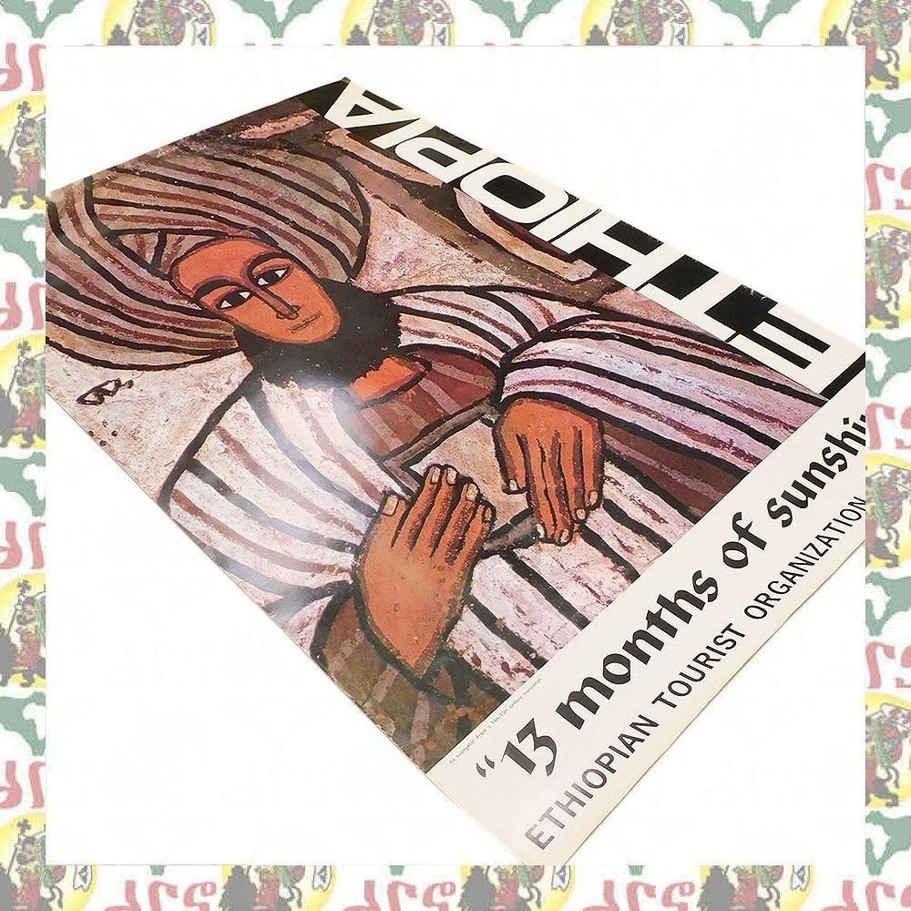 このポスターは、エチオピア観光史を象徴するアートワークで、文化的・精神的なモチーフが魅力の一枚です。
