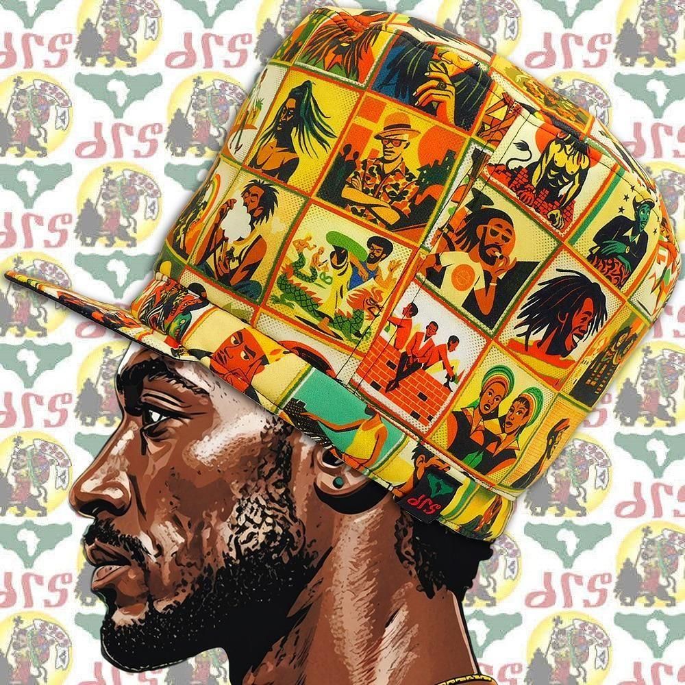 70年代ジャマイカの空気感、音楽とメッセージが混ざり合うレゲエカルチャーの世界観を、drsならではのグラフィックで一枚の帽子に落とし込んでいます。