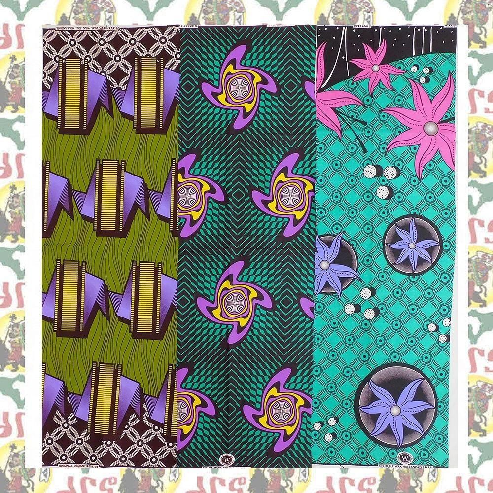 35cm幅 にカットされたアフリカンプリント生地 3柄セット お買い得パックです!!